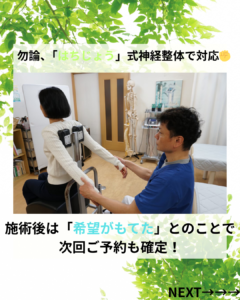 施術後には「希望が持てました!」と笑顔でお言葉をいただき、