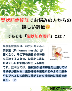#京都市整骨院 #梨状筋症候群 #坐骨神経痛 #腰痛改善 #股関節痛 #神経整体 #BMK整体 #はちじょう鍼灸整骨院 #西大路整体 #姿勢改善 #根本改善 #柔道整復師 #鍼灸師