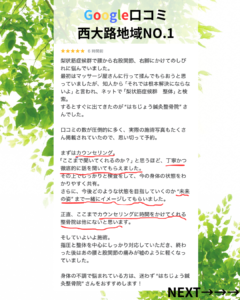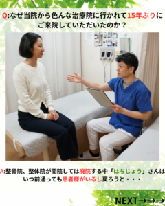 “将来の体の状態”まで一緒に考えてくれる治療院なんだと感動。