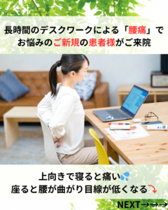 仕事上、長時間のパソコン作業や前かがみでの手作業が多い再診の患者様が、
