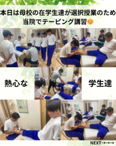 本日は母校の在学生が当院へ「テーピング講習」で足を運んでくれました😊