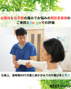 #はちじょう鍼灸整骨院 #京都整体 #手首の痛み #親指の痛み #神経整体 #PC作業疲れ #デスクワーク整体 #肩こり #姿勢改善 #再診 #喜びの声 #整骨院
