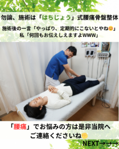 施術はもちろん【はちじょう式 腰痛骨盤整体】💪