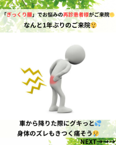 ギックリ腰でお悩みの再診患者様が1年ぶりにご来院💨