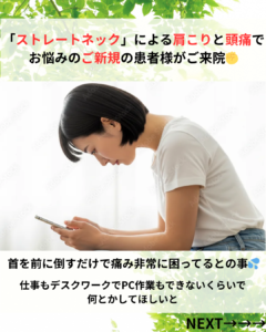 ストレートネックによる肩こりと頭痛でお悩みのご新規の患者様がご来院💨