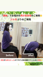 痛みが強く、前屈もできず日常生活やお仕事にも支障が出ている状態でした💦