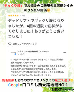 ギックリ腰でお悩みのご新規の患者様からの