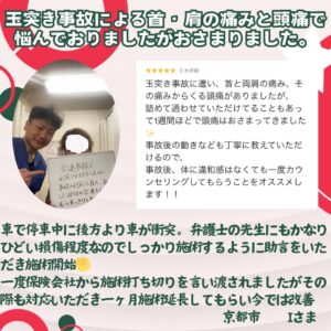 交通事故後の首、肩の痛みでお悩みの患者様からありがたい評価をいただきました☺️
