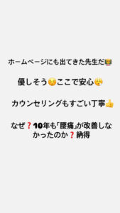 本日は10年間「腰痛」で悩んでおられました患者様からの嬉しい評価🥹