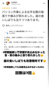 首・肩の痛みと張りでお悩みの患者様からgoogle口コミを頂きました☺️